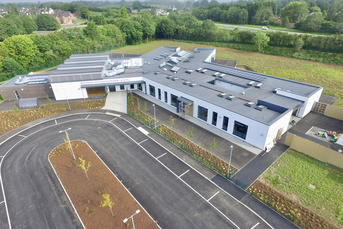 This new 2,500m² primary and nursery school will cater for the long term educational needs of Braidside Integrated Primary School’s 440 pupils, and replaces existing facilities at Fry’s Road, Ballymena.